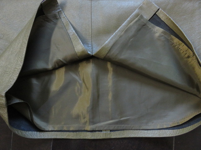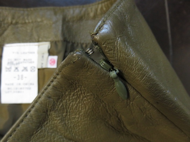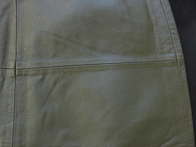 ■上質美品【 TWO AND HALF 】PIG レザー タイト スカート カーキ色 9号 M 送料185円 豚革 リアルレザー b560