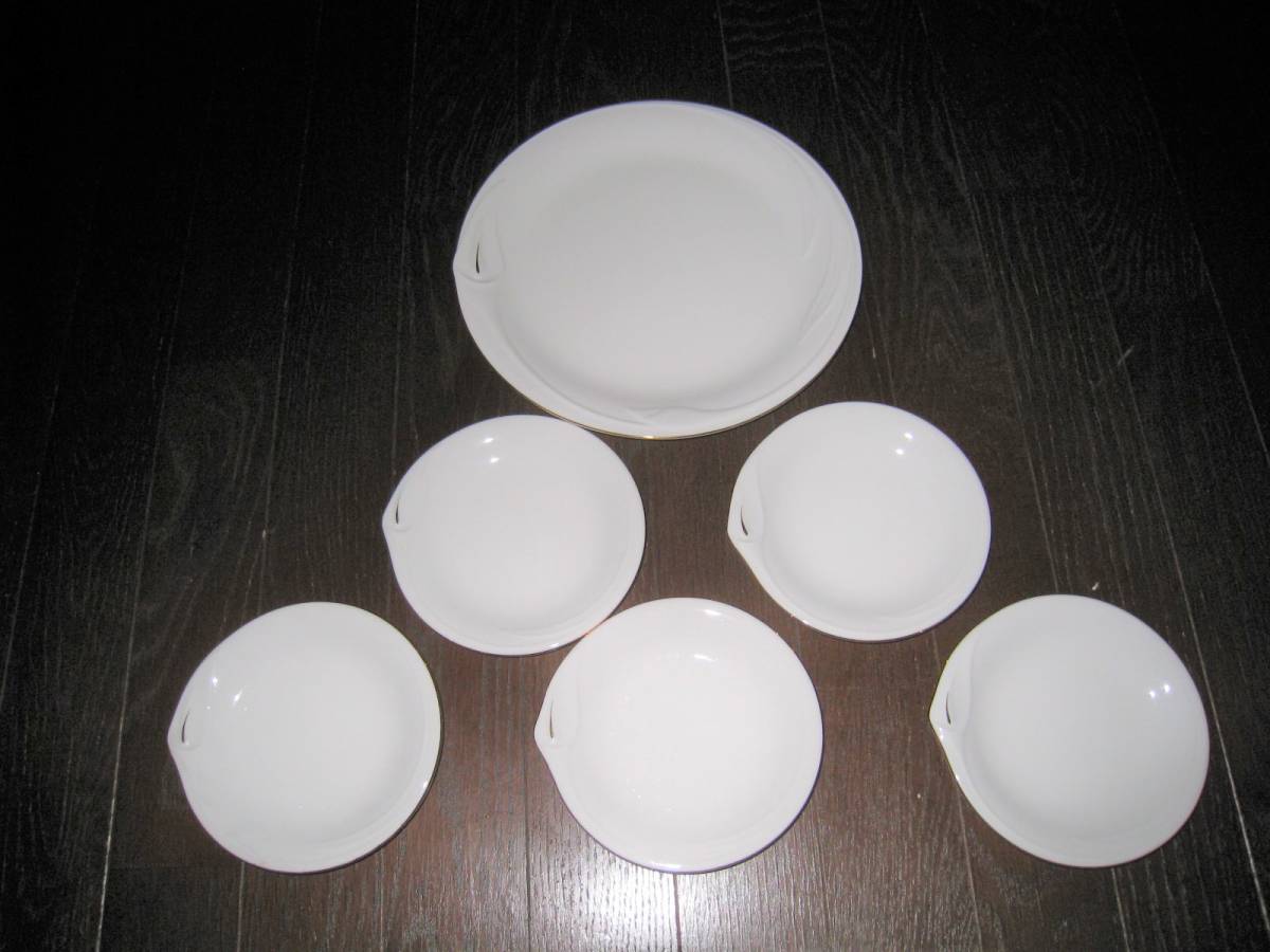 | たち吉ブランド「RICH FIELD」の大皿と小皿5枚セット。純白で周囲に金メッキが施されているもの。大きさは、大皿:直径26cm×深さ2cm 小皿:直径15cm。新品未使用品。重量が1.7kg、宅配サイズ60 |