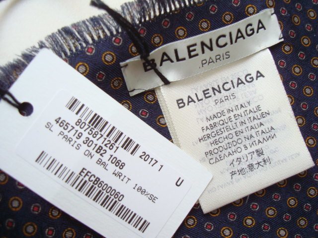 タグ付き BALENCIAGA イタリア製大判スカーフ 大判ストール PARIS プリント バレンシアガ