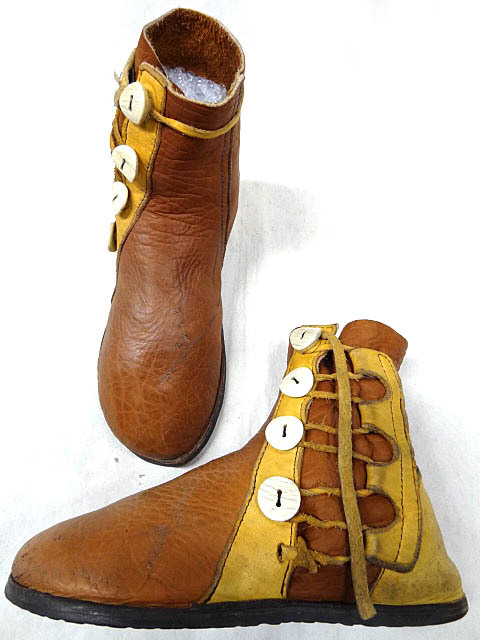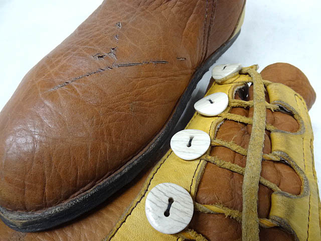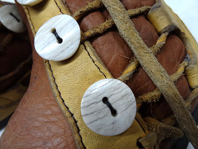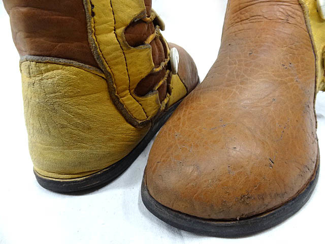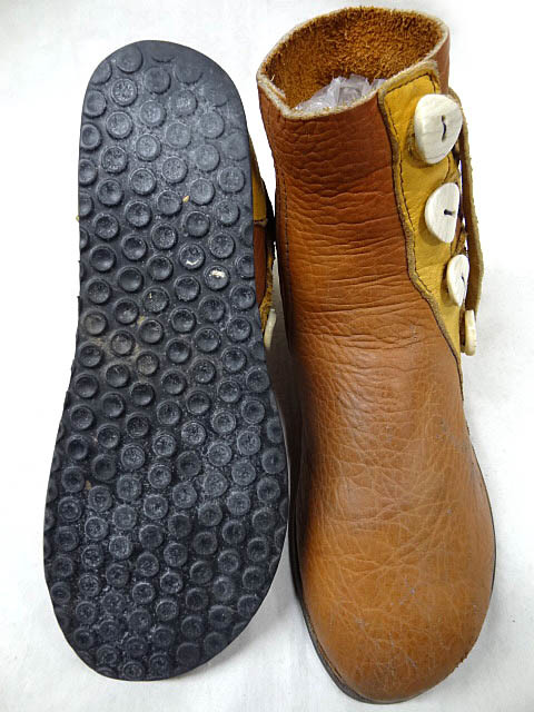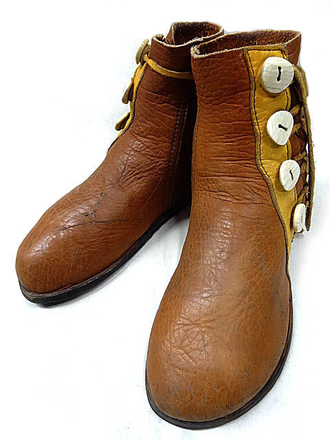 ビンテージ 70S 希少 ハンドメイド レザー モカシン シューズ ブーツ バッファロー 革 角 ボタン 2トーン デザイン ヒッピー レア ? 珍品