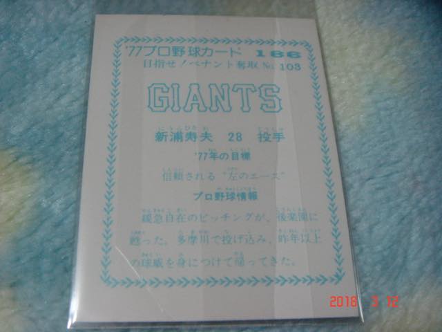 カルビー '77年 プロ野球カード 『目指せ!ペナント奪取』NO.186(新浦/巨人) 青版