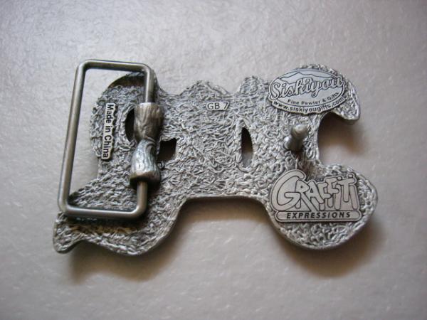 ジューシー・バックル。最高峰のバックルブランドシシキョウ社、GRAFFITI部門製が作っています。美しい模造石が埋め込まれています。84mmx58mm、104gほど。ベルト幅43mmくらいまで。新品ですがバックルには製造・流通過程で小傷などがある場合がございます。苦情・返品なしでお願いいたします。ゆうパック60サイズ、レターパックプラス、レターパックライト、定形外郵便(保障なし)による発送が可能でございます。