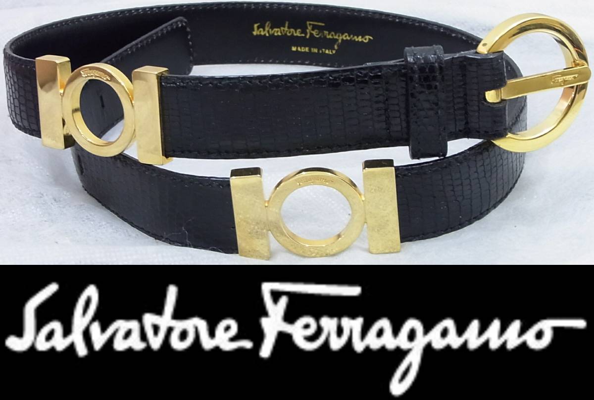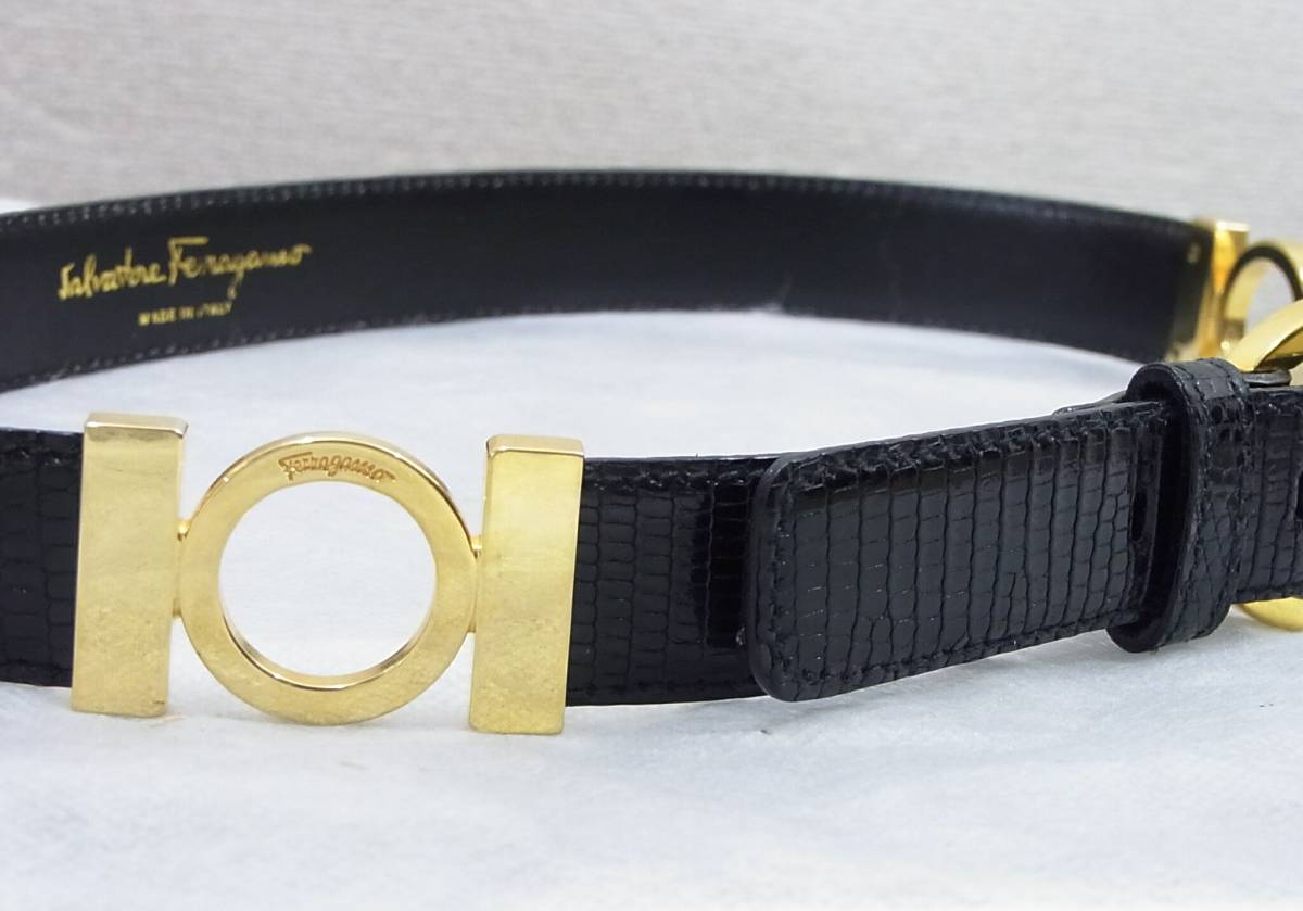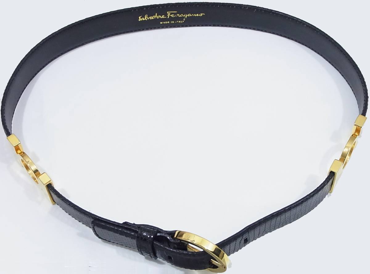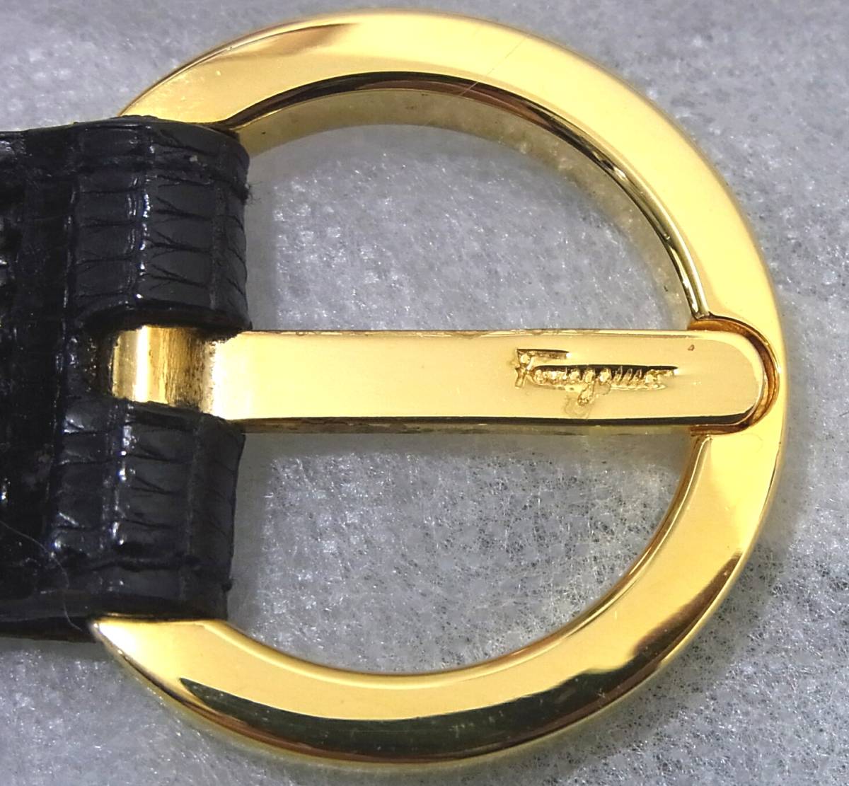 ★★★★即決価格でご落札は送料無料★★★★ Salvatore Ferragamo クロコ型押しガンチーニベルト サルヴァトーレ・フェラガモ 70cm 黒 ツヤ有り イタリア製 光沢有り MADE IN ITALY ブラック×ゴールド金具 送料390円~ | ||||||||||||||||||||||