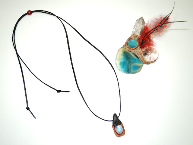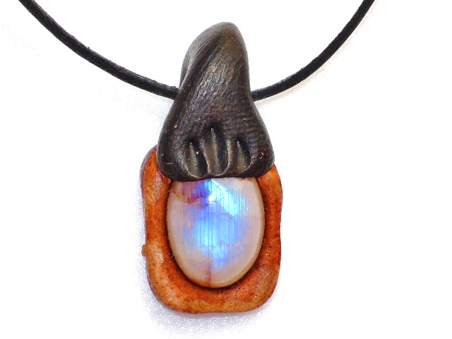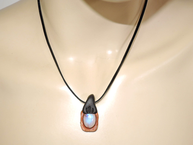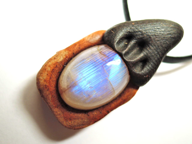 ★とんがり帽子のトロール★ブルームーンストーン★天然石革紐ネックレスペンダントkamesan