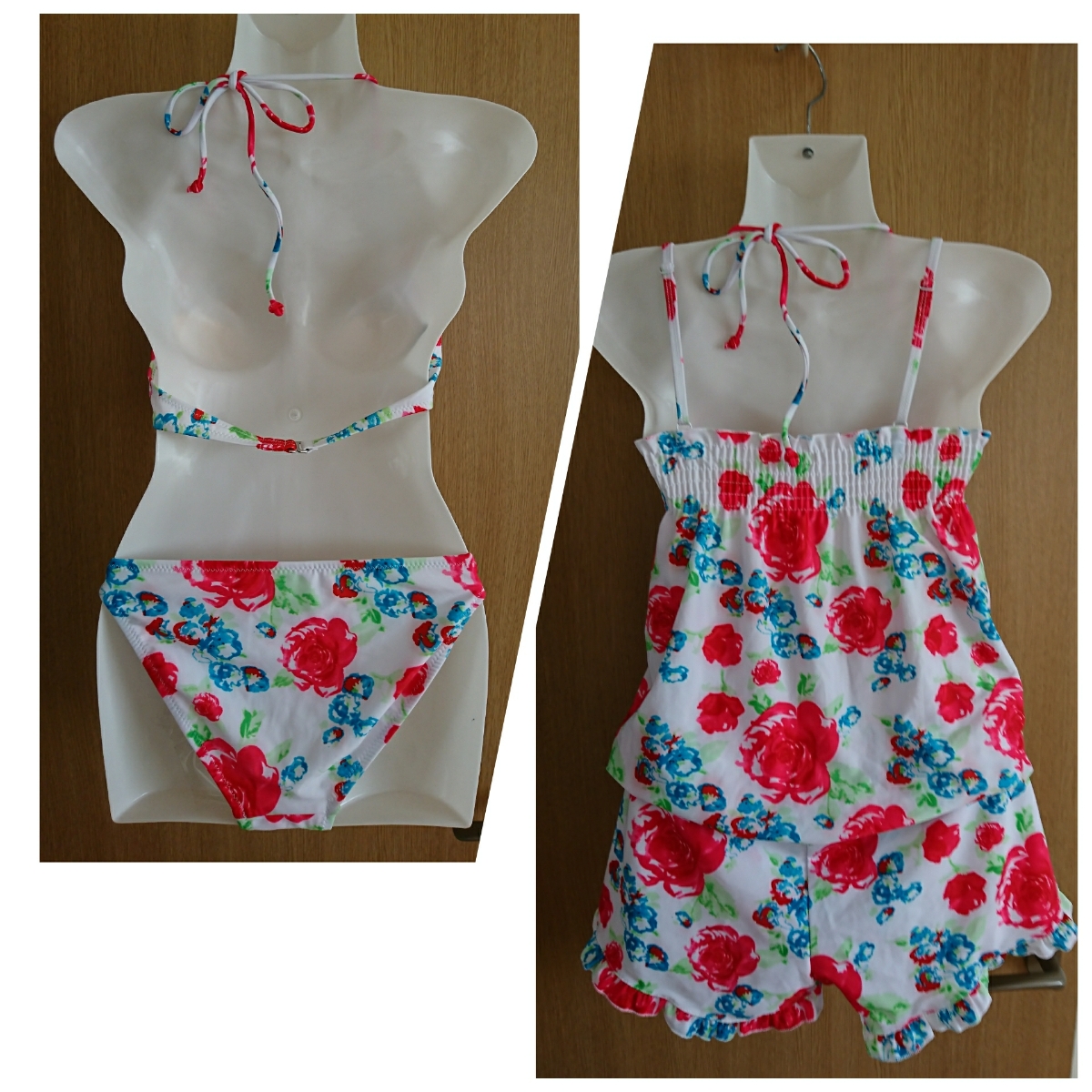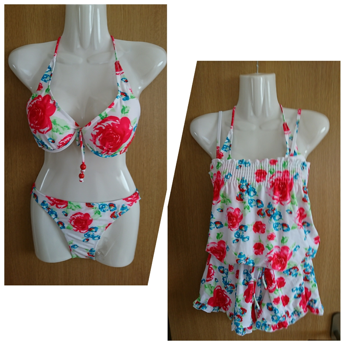 バラ柄のビキニ3点セットです