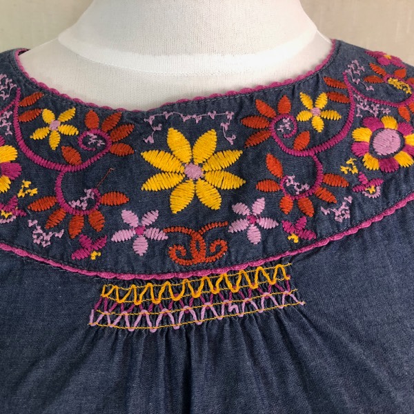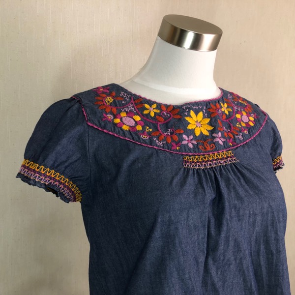 M621▼エスニック調 民族系デザイン 花柄刺繍 半袖チュニック ガールズ