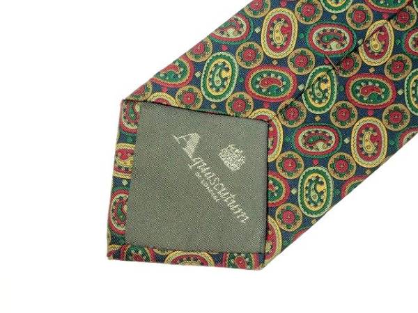 大人気!              アクアスキュータム    最高級シルク100%、  紺色 系ベースに  幾何学 柄 デザインが お洒落な♪   ブランドネクタイ に成ります。