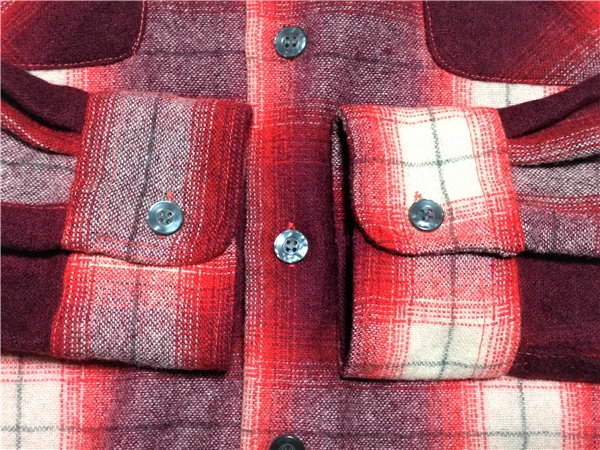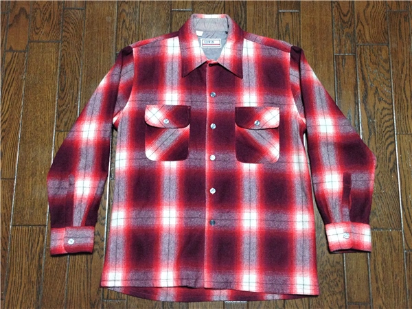 ビンテージ エドウィン EDWIN オンブレ チェック ウール シャツ L 赤 エンジ 検索 シャドーチェック 50s 60s 70s VINTAGE