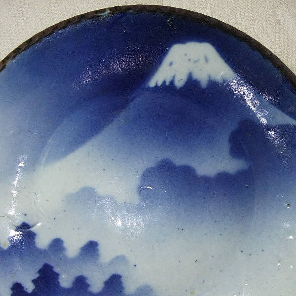 【睦】伊万里 染付 印判 富士 古伊万里風図柄 骨董■