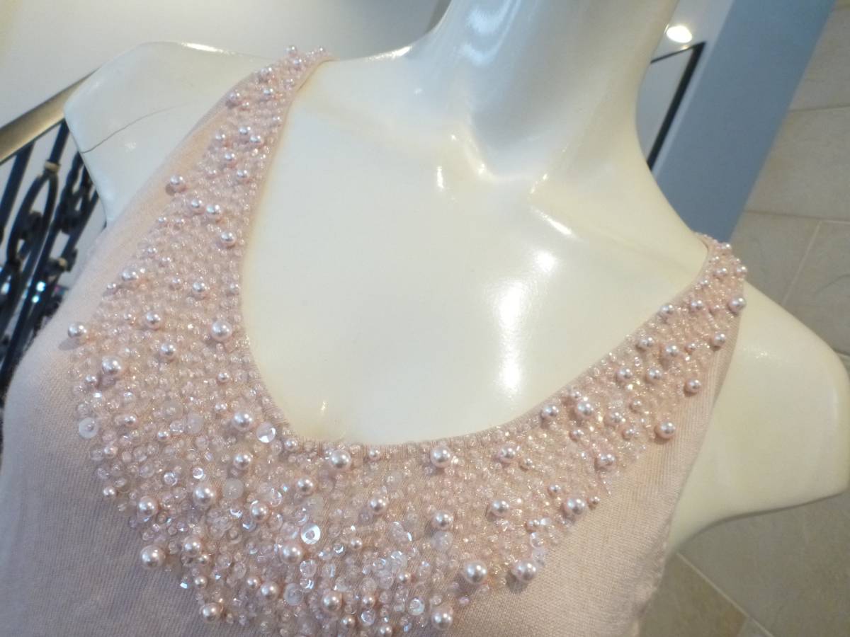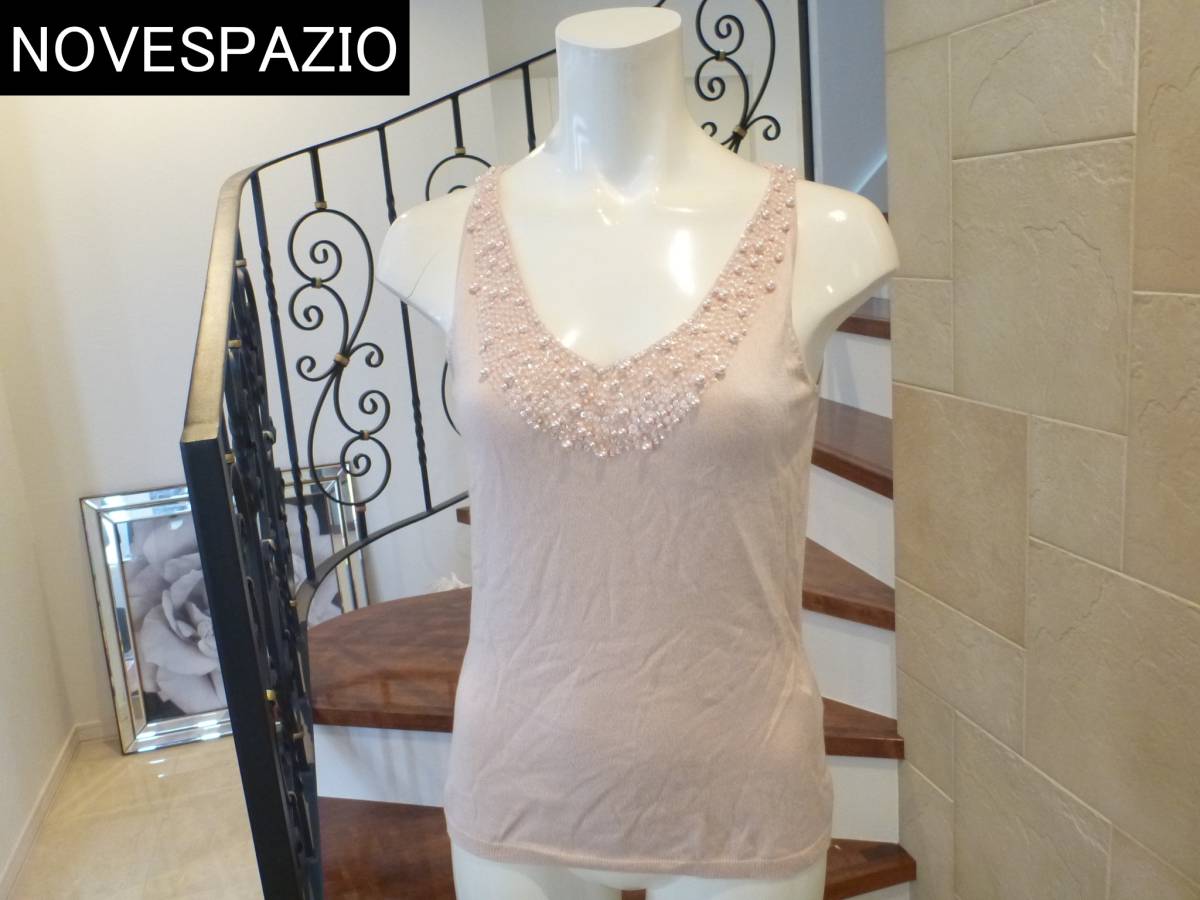 ●2.5万 NOVESPAZIO ノーベスパジオ ピンク パールビジュー カシミヤ混 ノースリーブセーター 38    M相当