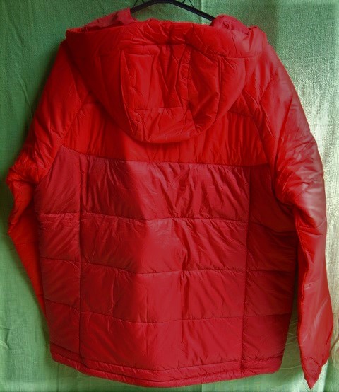 素材は表:FD 20dロックアウェーリップストップ(ナイロン100%) 裏:ライトニングウィズリフレクティブプリント(ポリエステル100%) 中わた:550FPダウン(ダウン80%、フェザー20%) マイクロテンプ(ポリエステル100%)です。