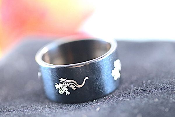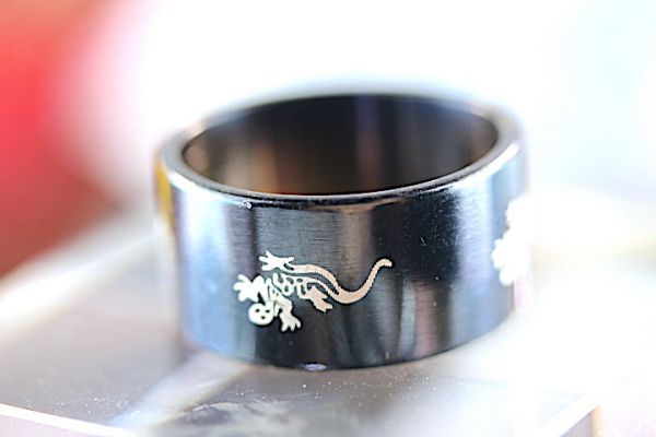【送料無料】サイズ 16号 蜥蜴刻印 ステンレス ブラック リング ノーブランド 指輪 アクセサリー 《現物出品》 #154