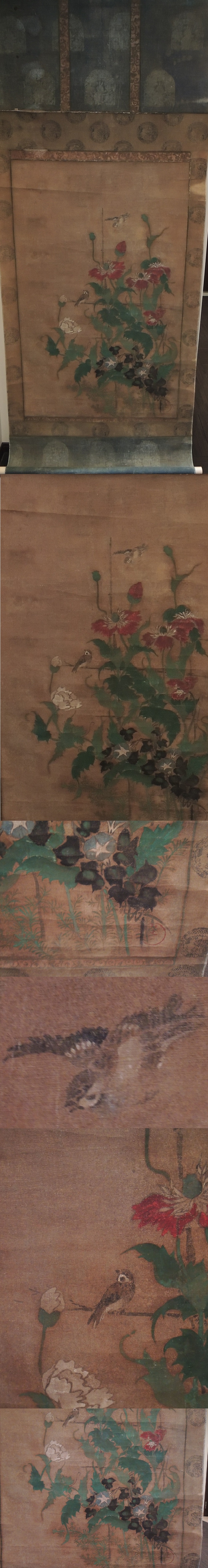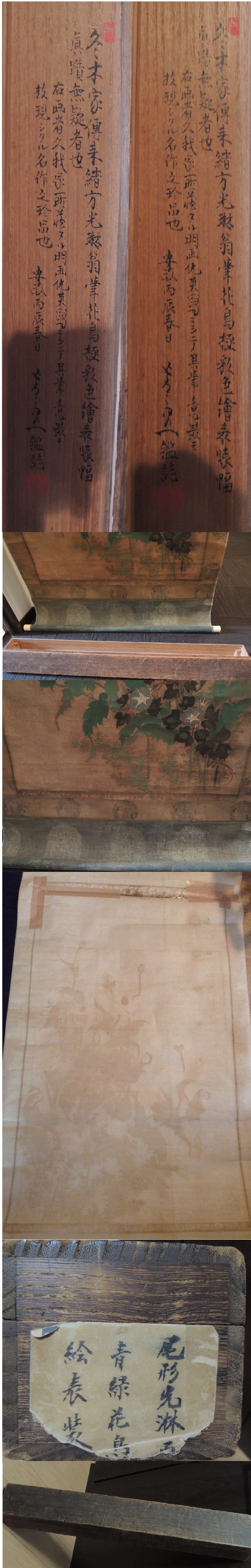 国宝 尾形光琳(法橋光琳)】青緑花鳥絵 表装 伊亮印 共箱 冬木家傳(江戸深川の豪商)明画仇英意など 鑑定あり