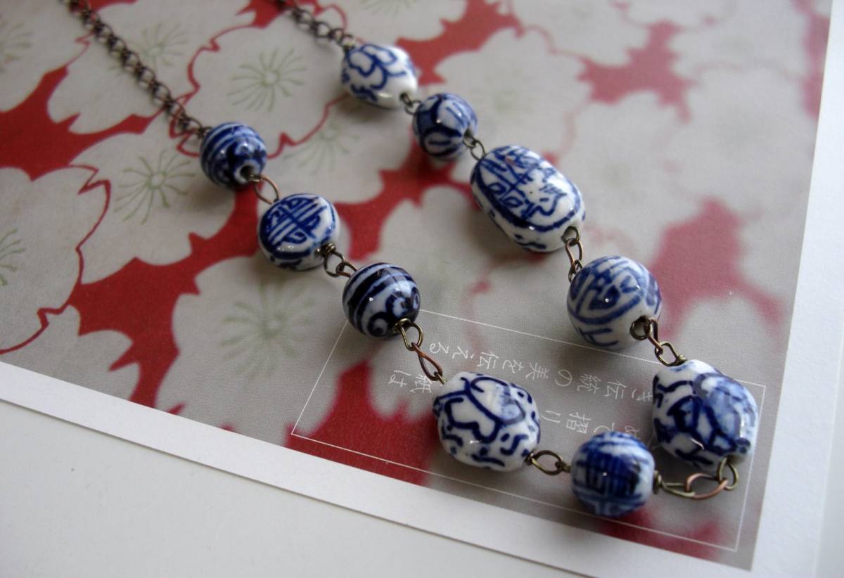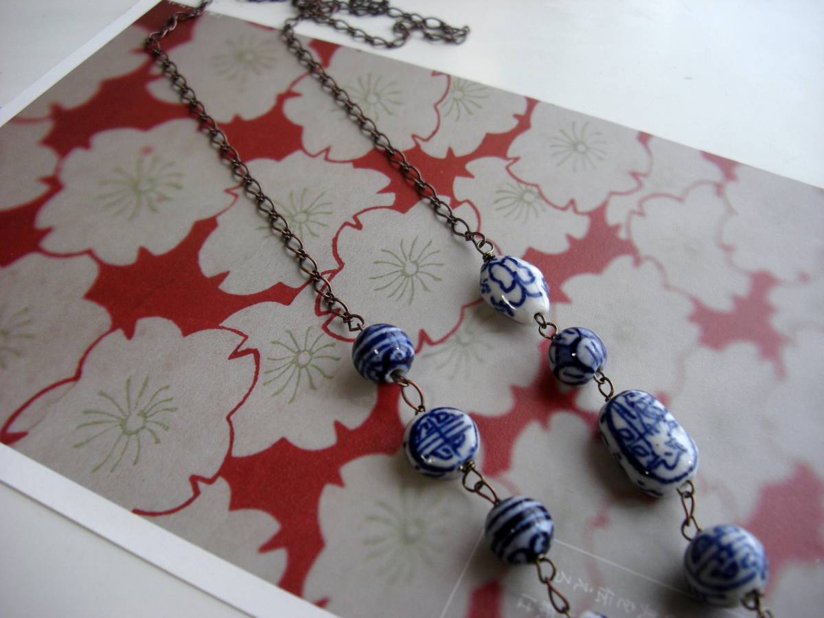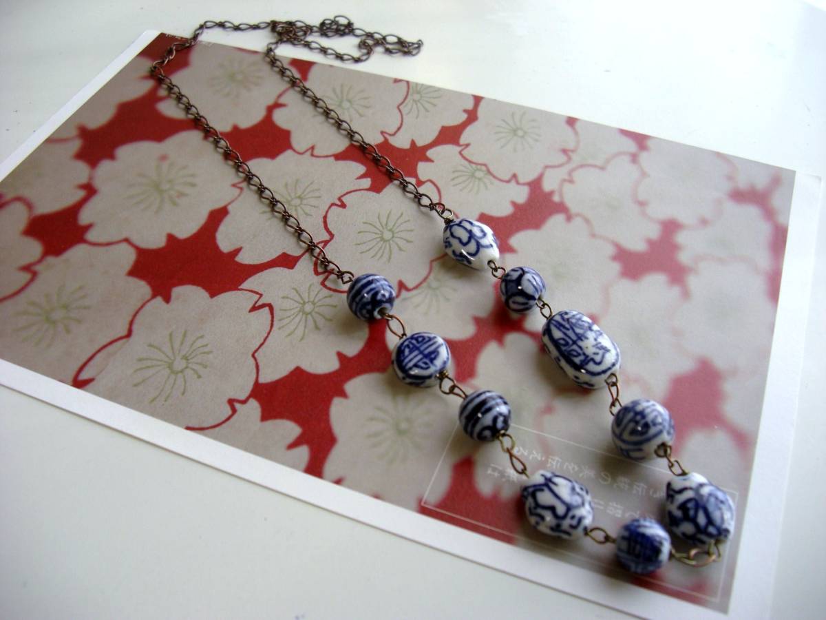 秋色・デッサン・・シリーズです♪オリエンタル・ロマン・・シックな陶器ビーズのネックレスです♪深い藍色の陶器ビーズが神秘的な表情です♪陶 器ビー ズは10ミリから15ミリ位までの丸玉やナツメなどのデザイン違いです♪長さは全長 68センチ位で調節自由です♪チョーカー風にされても素敵です♪お揃いのネックレス2本セットやリングも出品し ています♪シンプルで飽きのこないいつまでも着けられるデザインを考えて作りました!ハンドメイドをご理解頂いてノークレーム、ノーリターンでお願いしま す