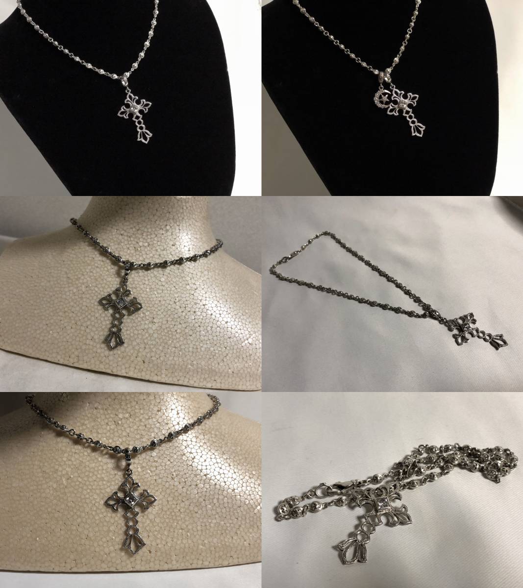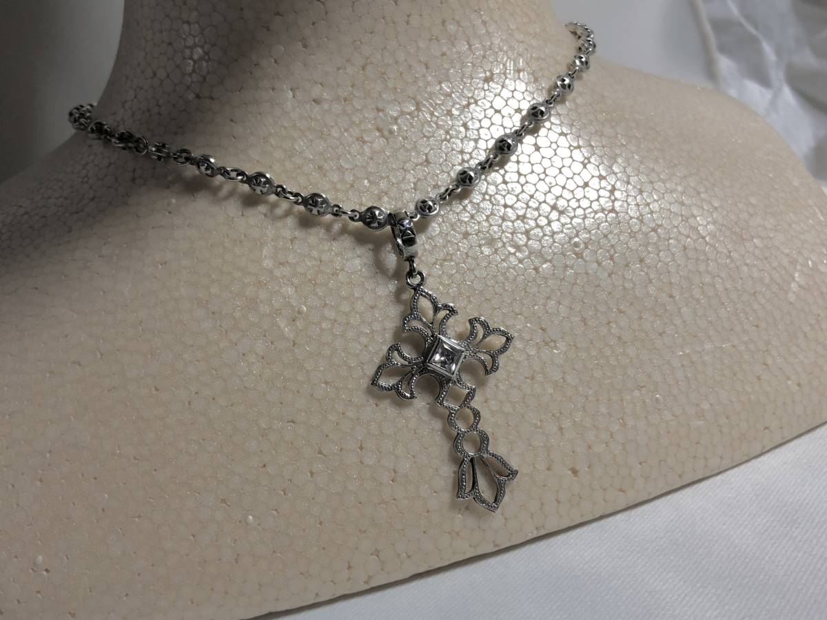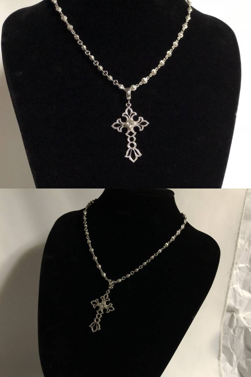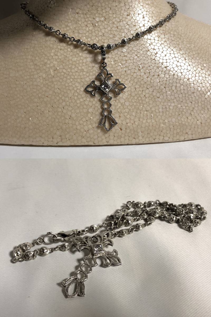 ローリーロドキン 名作!! 『ミルグレイ オープンLサイズクロス×純正ゴシックオーバルクロスチェーンネックレス セット』★