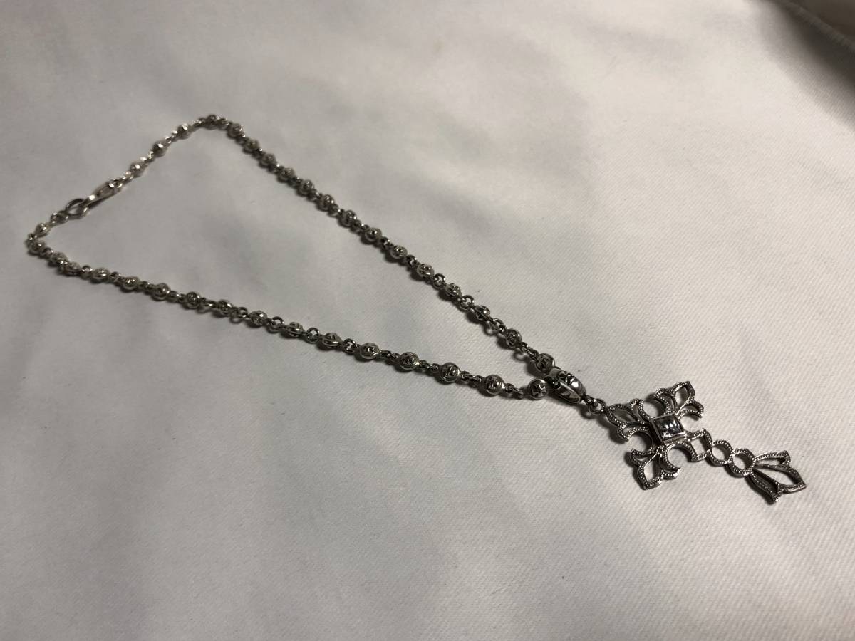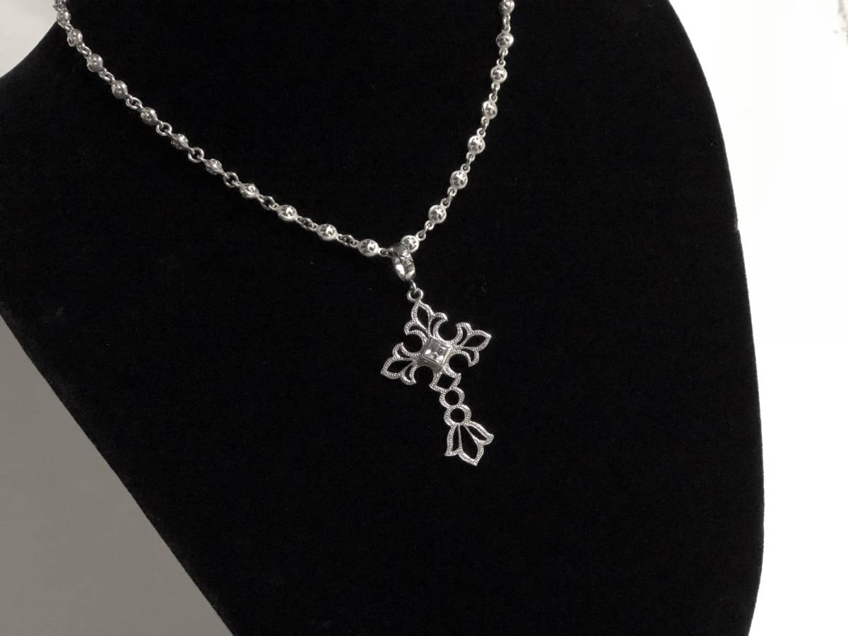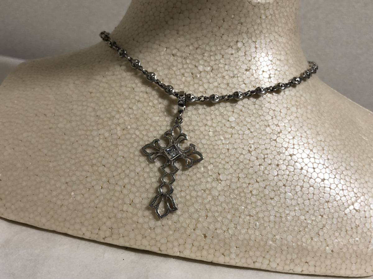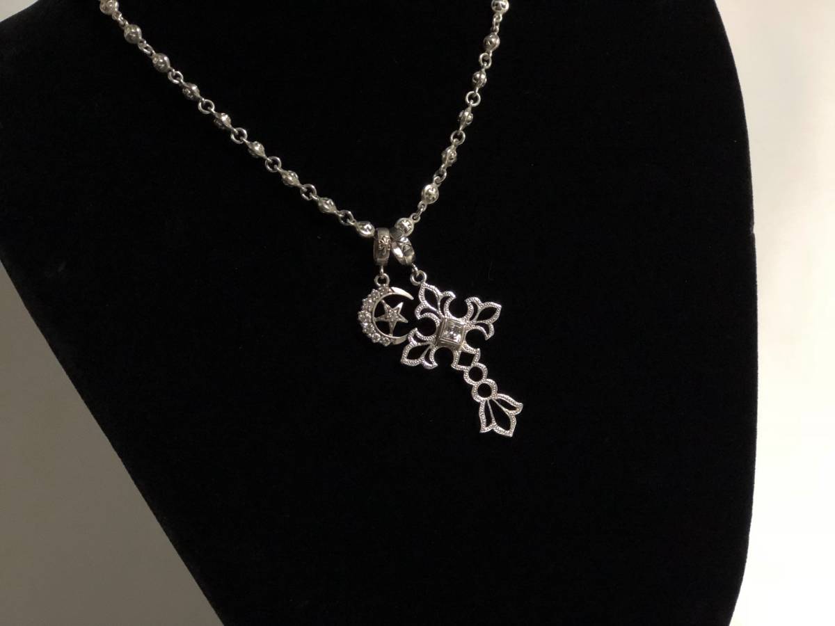 ローリーロドキン 名作!! 『ミルグレイ オープンLサイズクロス×純正ゴシックオーバルクロスチェーンネックレス セット』★