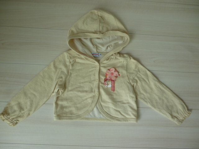 【ミキハウス】モチーフ付フード付カーディガン ボレロ★100cm★