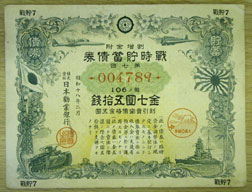 昭和18年2月日本勧業銀行発行 債券番号004789 12.5×16.5cm 状態:若干ヨゴレ・皺