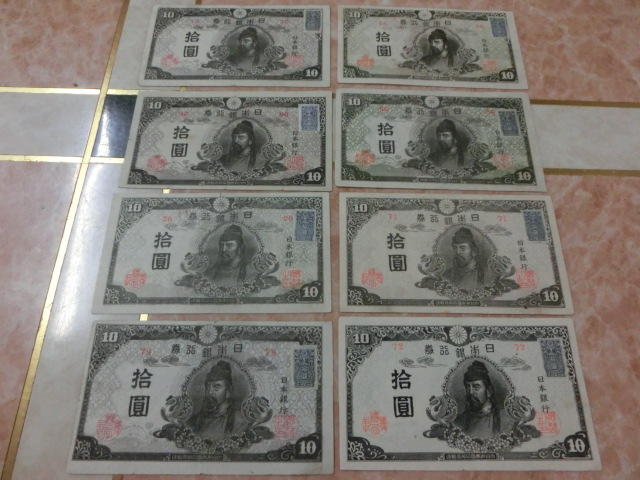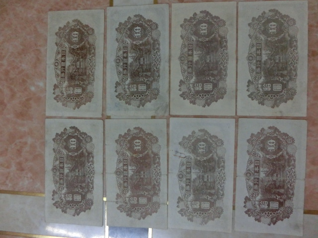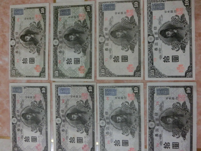 再改正不換紙幣10円 4次10円の前期3枚・後期5枚で証紙付を8枚セットです。