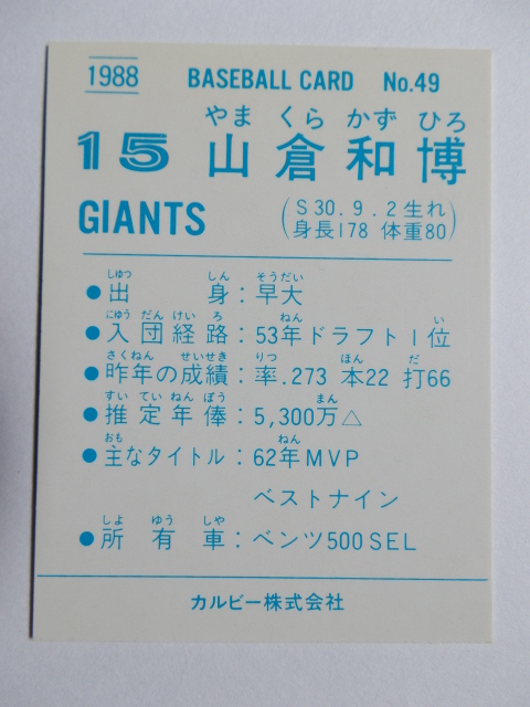 カルビープロ野球カード1988 No.49 山倉和博 読売巨人 ジャイアンツ