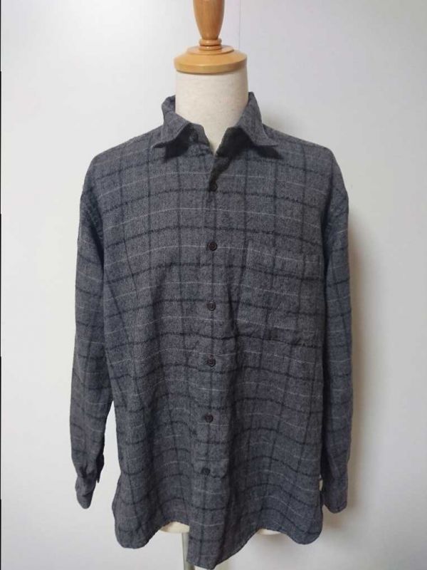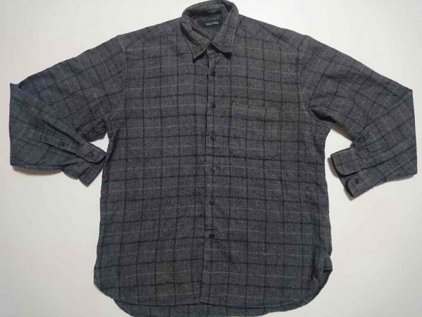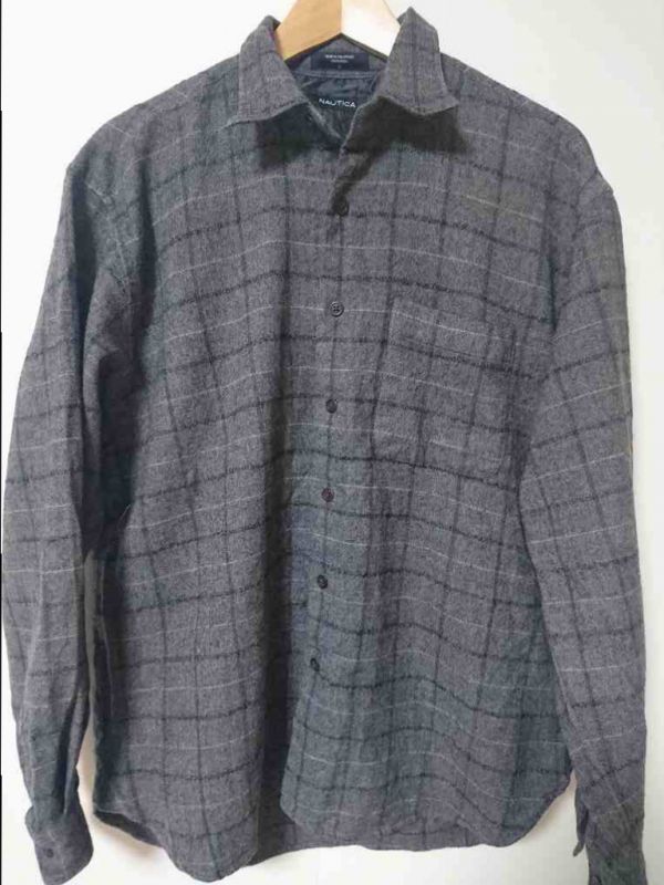 ●US USED NAUTICA ノーティカ ウールシャツ チェック柄 格子【L】グレー