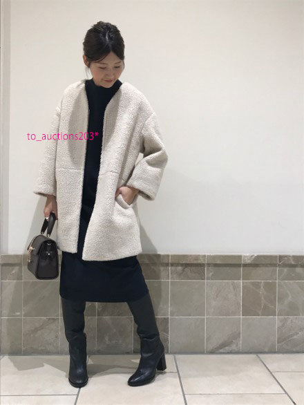 新品  NOBLE ノーブル ◆ 新品 フェイクファーボアオーバーコート ベージュ 38 ◆ \45,360税込-
