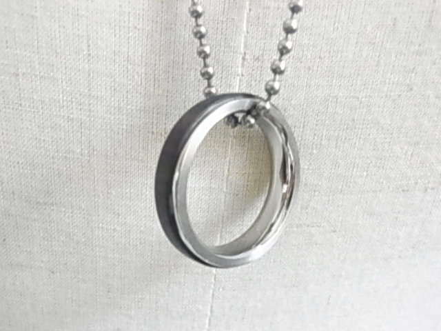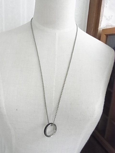 トップは外せるリングデザイン 30号くらい シルバーカラー×ブラックカラーのトップ ユニセックス 男女兼用 ロングネックレス☆☆