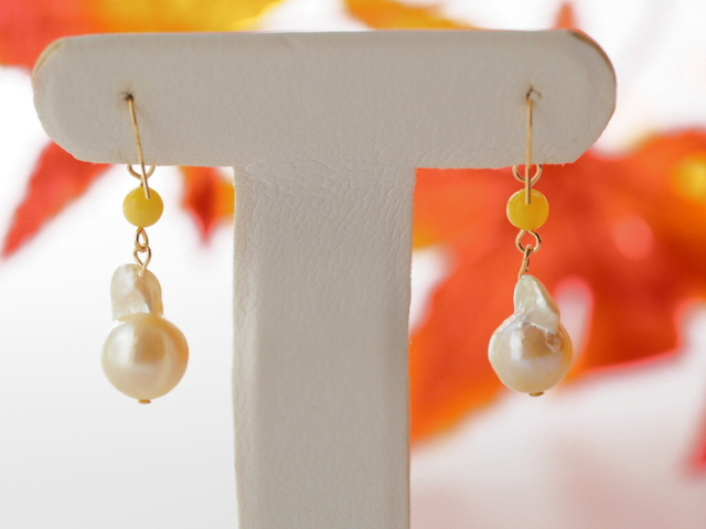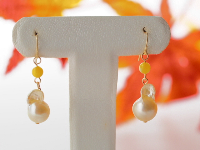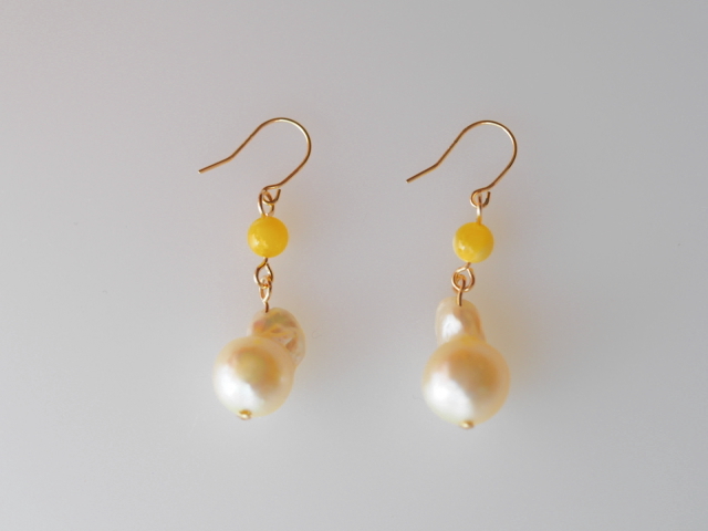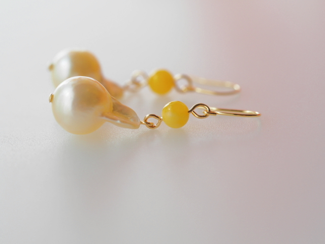 こちらは天然あこや真珠と小珠4mmサイズの琥珀を組合わせたピアスです。