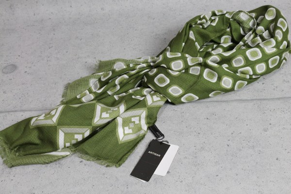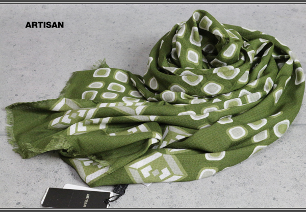 新品アルチザン イタリア製スクエアドットレーヨンストール抹茶2