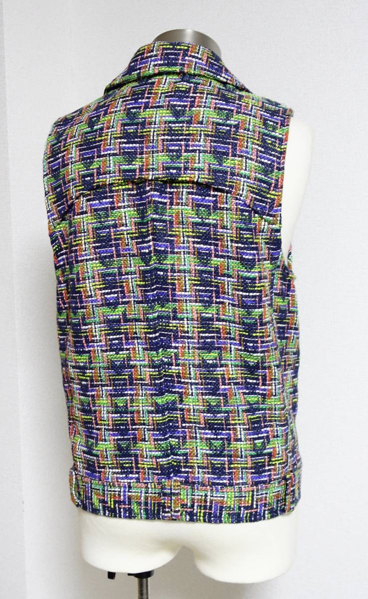 | 商品詳細 ■綺麗な配色な編み生地、ライダースデザインもおしゃれで、 コーディネートの主役級のベストです。 おしゃれな方ぜひ ■素材%;綿85 ポリウレタン15 ■サイズ表記:F 実寸:cm 肩幅;34 身幅;44 着丈;57 袖丈; ■状態;usedですが状態良好です。ベルトループありますがベルトはありません。 |
