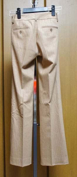 | 商品詳細 ■ロングラン人気デザインのMAX C ウエストからヒップにかけてコンパクトにフィット おひざの少し上位置でほんのり絞って裾にむかってゆるやかなセミフレアのレッグラインはす~と足を長く見せてくれます。 フロントのポケットはヒップに沿うデザインではないので、ポケット口が開いてしまうのが苦手な方にもおすすめ ヒップポケットは計算された浅めの位置の配されて、ヒップを小さく見せてくれる効果も大 ウエストのベルトループでもちろんベルトのおしゃれもOK ■色:薄茶 ■素材:毛98% ポリウレタン2% ■サイズ表記:2 ウエスト61 実寸:cm ウエスト;38 股上;20.5 股下;80 裾幅;28 ■生産国;日本 ■usedですが特に記載するダメージありません。 |