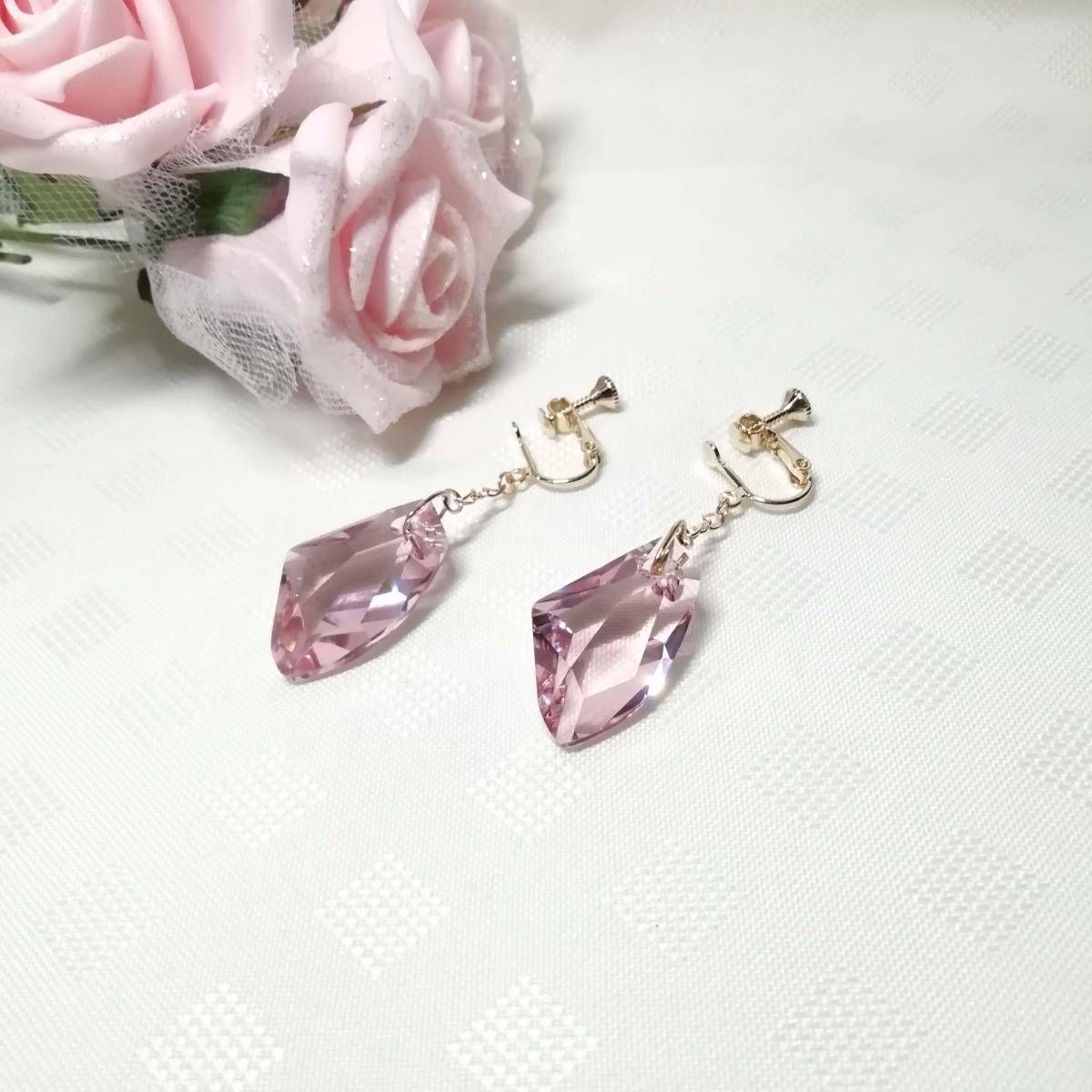 ★商品内容★ ★スワロフスキーGalactic Verticlライトローズのハンドメイドイヤリング★ゴールド・シンプル・上品・ゴージャス・薄紅色 大粒のスワロフスキーの変形ビーズが 個性的な印象のイヤリングです・**.・☆・**.・**.・ 柔らかな色合いのライトローズが 上品で優しい女性らしさを印象付けます**。.・*.。☆・**.・**. 普段使いはもちろん、お出掛けや お洒落のワンポイントにも最適です.・*.。☆・**.・.*。.*・.* 【素材】 スワロフスキー6656Galactic Verticlライトローズ27mmx16mm フィガロチェーンゴール カンより垂れ下がる長さは、約4.5㎝です。 Eー428 ★商品状態★ ・画像と実物の色味が多少異なる場合があります。 ・緩衝材(プチプチ等)を使用し、防水梱包でお届け致します。 ★注意事項★ ***~ご購入前に必ずお読み下さい~*** ***商品について*** *一点一点心を込めて作っておりますが、手作りなため多少の歪み等あるかもしれません。 手作りの味わいと、世界で一つだけの作品とお考えいただければ幸いです。 *デリケートな商品ですので、強く引っ張ったりすると破損する事もあります。 お取り扱いにはご注意ください。 *写真も完璧な色合いの表現にはなっていない場合もあります。 *基本イヤリング金具は跳ね上げ式ネジ付きを使って作成しています。 *金属アレルギーや化学物質アレルギーなどへの対応はしておりませんので、ご心配な方はご遠慮下さいますようお願い致します。 *永くご愛用頂くために、ご使用後は柔らかい布等で軽く拭いてください。 ***ご質問について*** *ご購入前にお願い致します。 日中は仕事をしておりますので、ご返事が直ぐに出来ない場合がございます。 出来る限り早い対応を心がけますが、ご了承ください。 また、発送までには、お振込み確認後、翌日の発送を心がけておりますが、仕事の都合により2~3日程かかる場合がございます。(その際にはナビにてご連絡いたします) お急ぎの場合は、極力対応いたしますが、場合によっては対応致しかねる事もあります。ご了承下さいませ。 落札後4日以内にお手続き、ご連絡が無い場合は落札者都合で削除致します。 発送日指定・ご入金の予定が1週間以上先をお考えの方は、入札の前に質問よりご連絡くださいませ。 予めご了承の上、ノークレーム・ノーリターンでお願い致します。 | |||