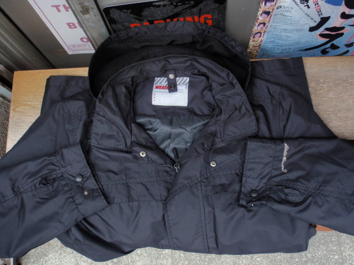 中古品ですので少し使用感ありますが、あまり使って無かったので目立った汚れや傷は無く状態は良いです。エディーバウアー「WEATHER EDGE」の黒いナイロン製コートになります。フードは取り外し可能です。サイズはM表記ですが、実寸では平置きで肩幅51センチ、身幅64センチ、着丈96センチ、袖丈65センチ位です。正規品。