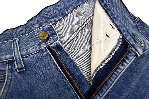 フロントジッパーの下部分を基準に、パンツの端と端を測っています。片側採寸ですので、数字を2倍していただけますと、尻回りの数字になります
