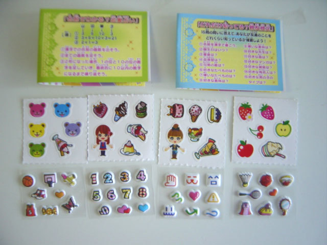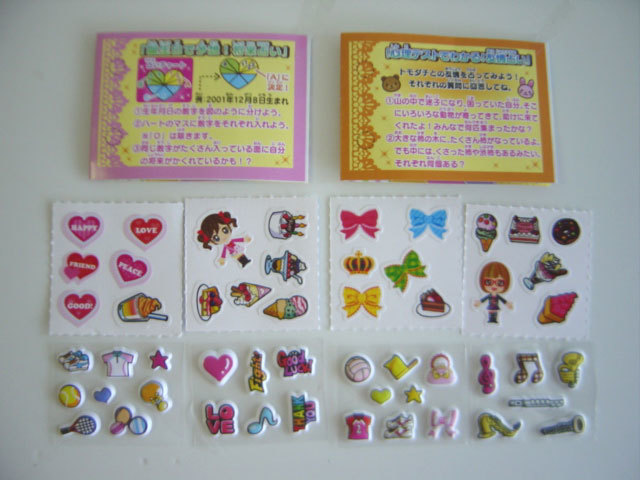 1.Aセット 2.Bセット 3.Cセット 4.Dセット ◇プロフ帳専用のデコシール! かわいいぷっくりシールやフラットシール! みんなで盛り上がる占いシート付き! |