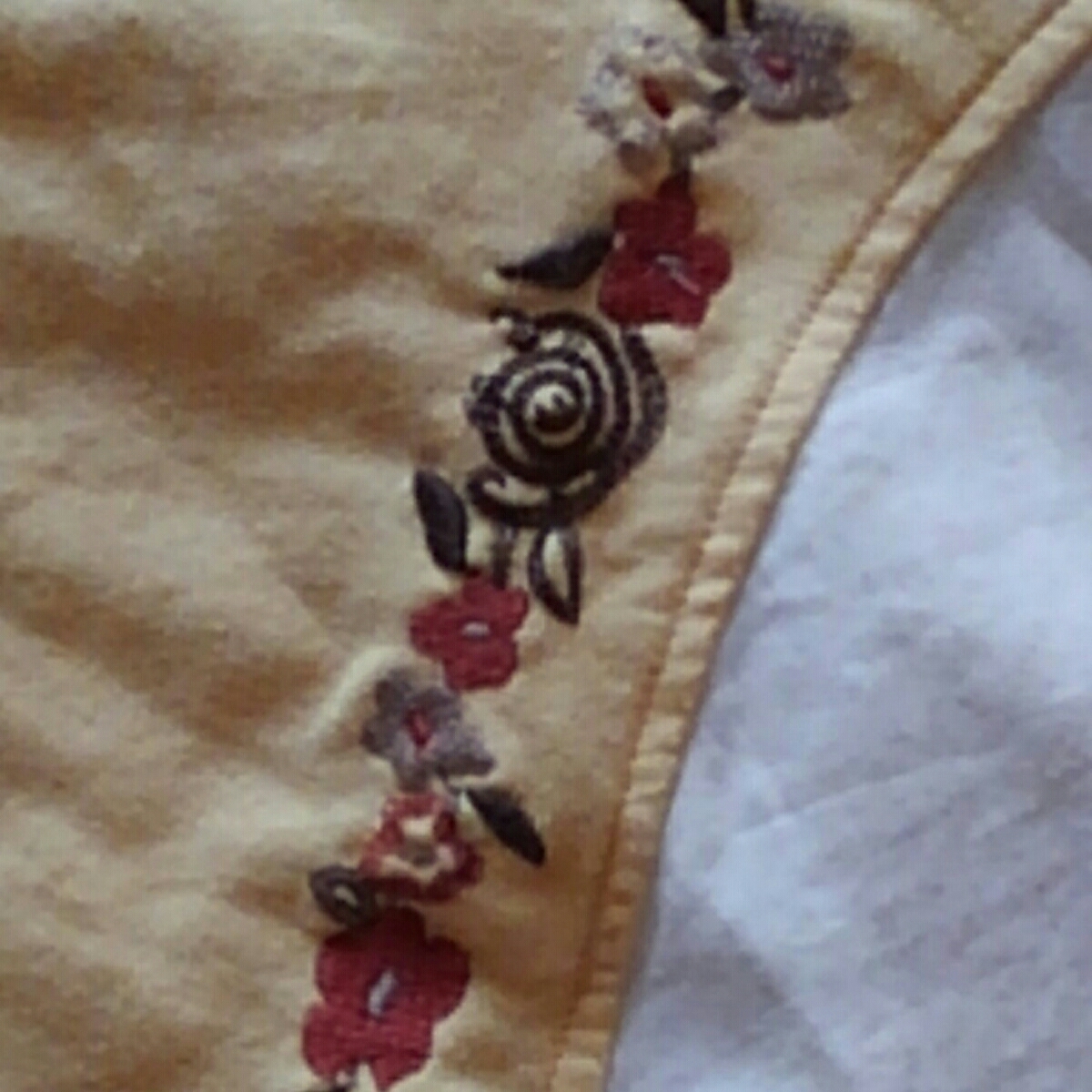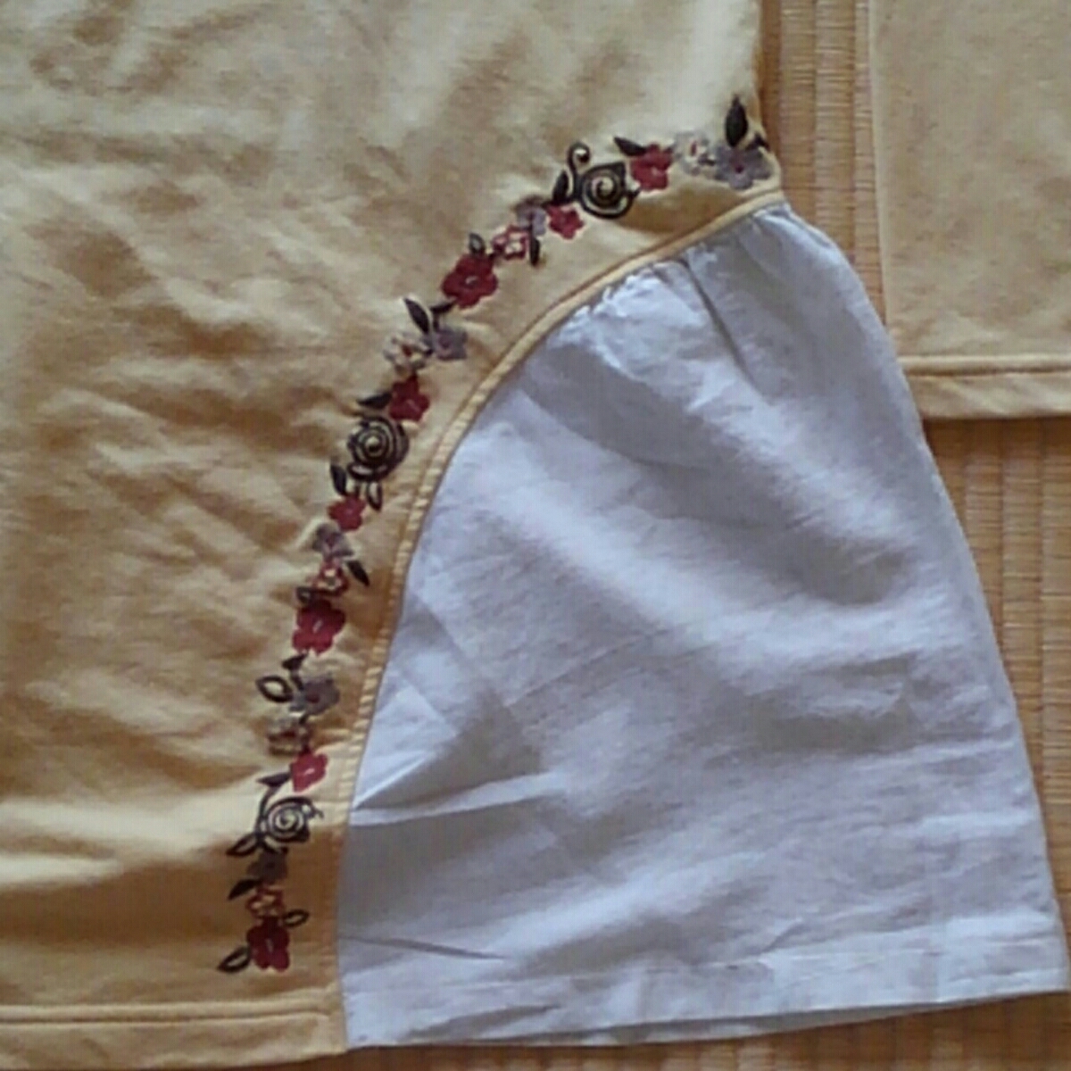 カラシ色の部分は少し厚めのTシャツ地の様な感じです。
