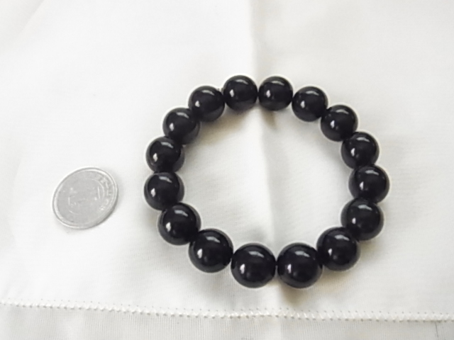 黒 ブラック シンプルなボールビーズストーン 伸縮性 ブレスレット★