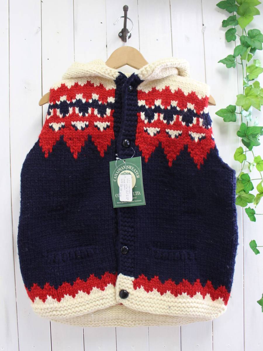 新品◆カナディアンセーター◆カウチンセーター フード付き ニットベスト(34)定価48,000円