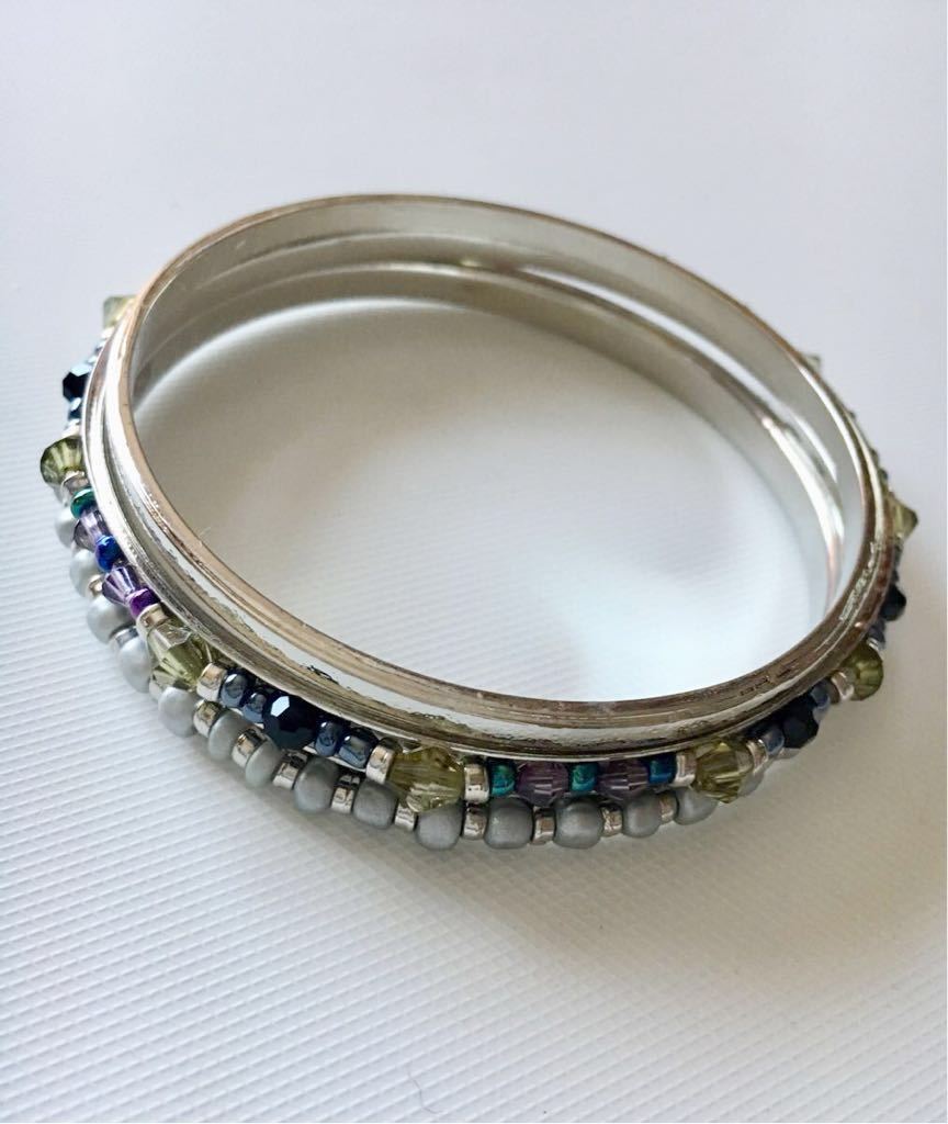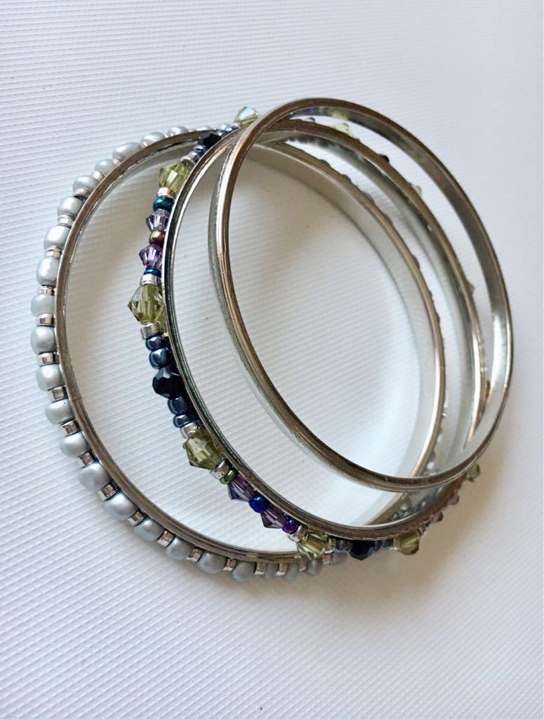 こちらは、パープル、ブラックなどのカラフルなビーズの 3ブレスレットになります♪