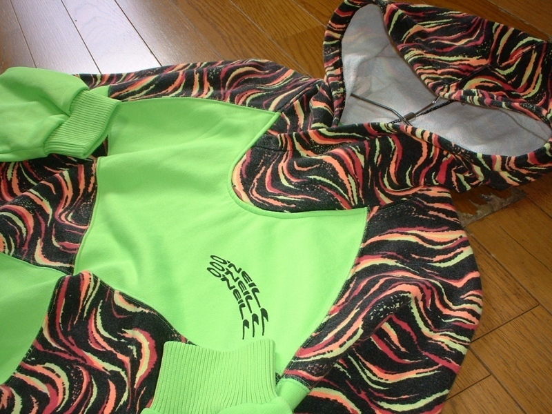 ・オニールによるジャージパーカーをご紹介致します。カラーは冴える蛍光ライムベースで、素材はポリエステル55%×コットン45%のジャージボディをメインに使用しています。90’sフレーバー漂う抜群に格好いいデザインが魅力で、状態も問題なく良好です。