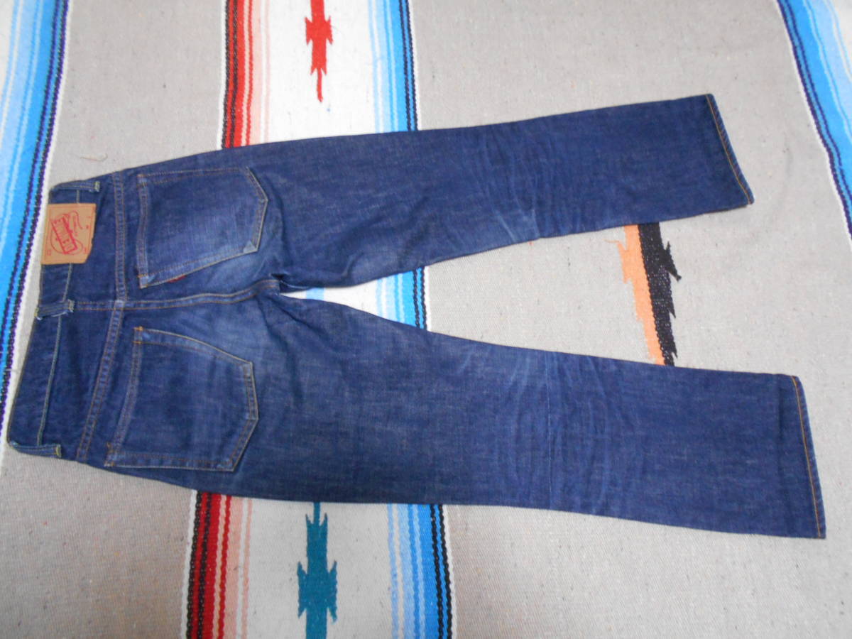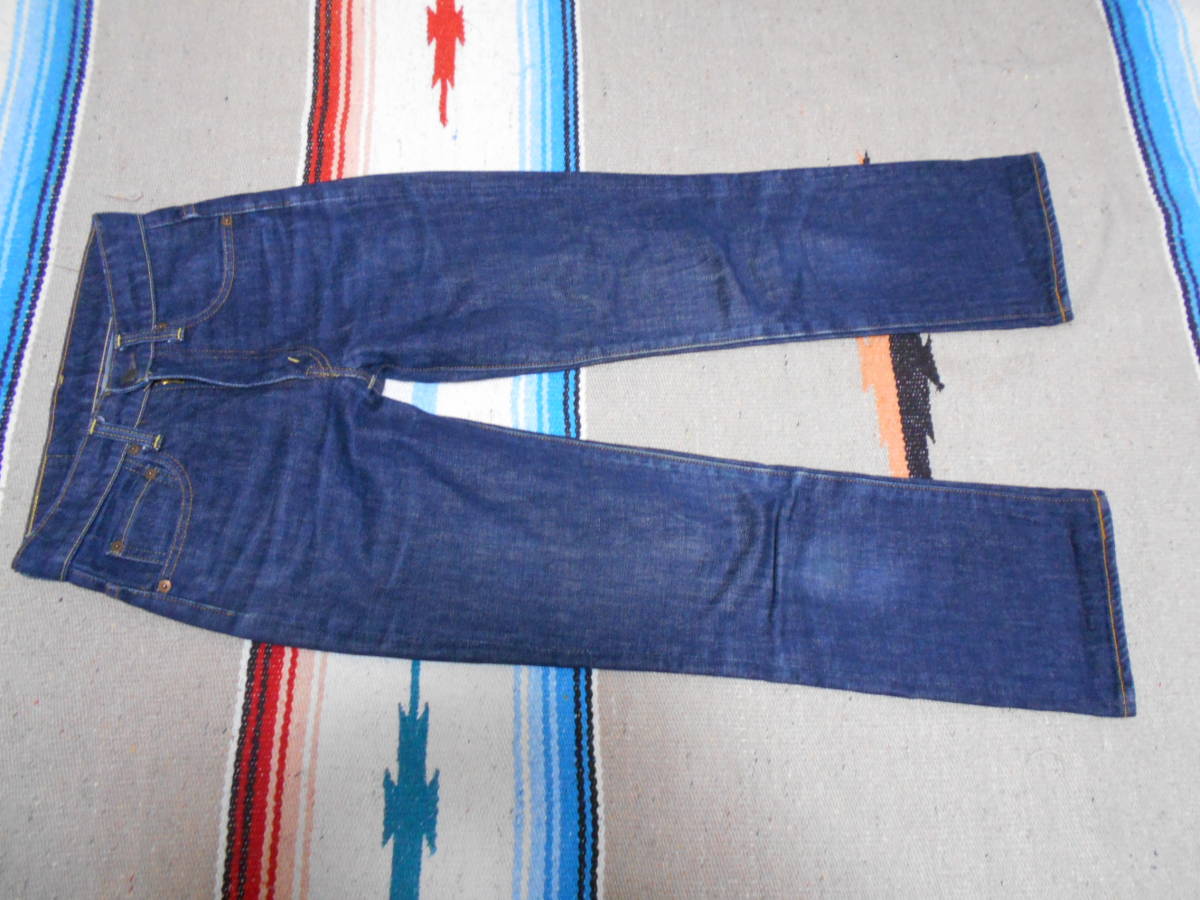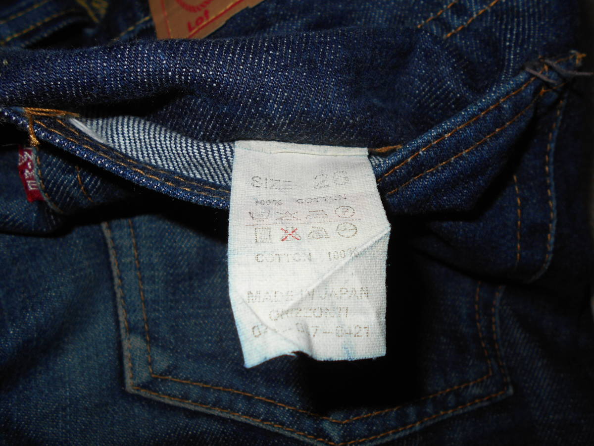 バックポケット裏ラベルのサイズ表示は W26、実測は ウェスト69㎝、股下65㎝、股上23cm、裾幅20cm