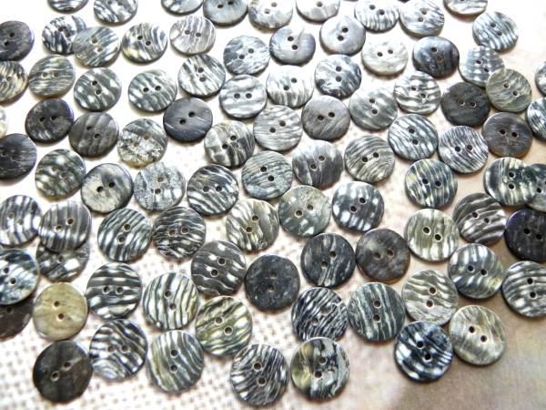 | ★商品説明★ | 黒蝶貝の皮の部分を使う、裏使い用ボタンです。 天然素材等の生地にピッタリ 他に11.5mm 13mm も出品しておりますので、 裏使い で検索してください。 色、厚み等は、天然物ですので、均一ではありません。 ご了承ください。よく掲載写真をご覧のうえお買い求めください。 ボタンを変えると驚く程、洋服のセンスがアップします。 一度おためしあれ。 商品の性質上、一つ一つ表情が異なります。 自然の風合いを楽しんでください | ||