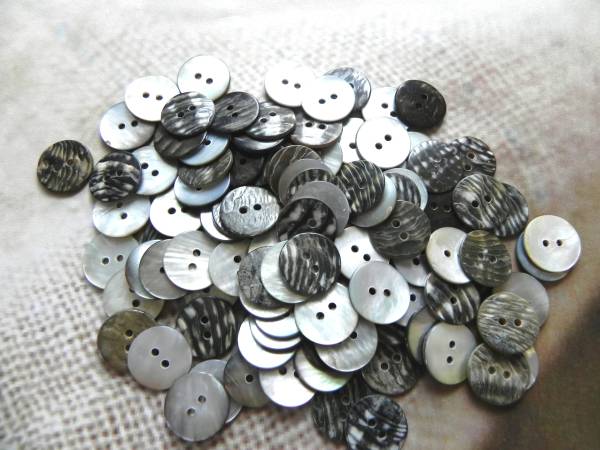 | ★☆黒蝶貝 ボタン 裏使い 2穴 15mm 大量100個☆★ | |||