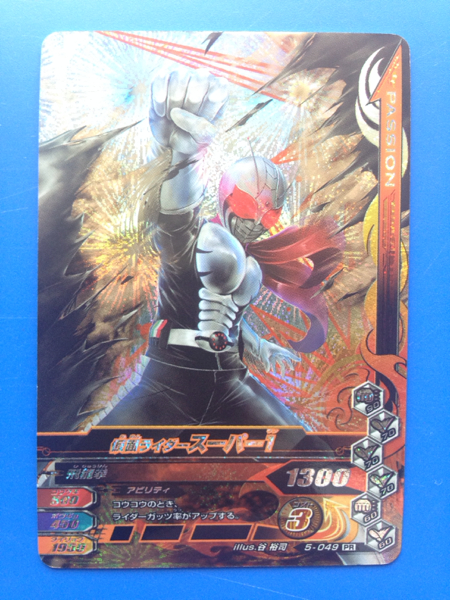 仮面ライダー、ガンバライジングの第5弾から、PRカード、No.049《仮面ライダースーパー1》の登場です。発送は、普通郵便を利用します。(特にご希望のない場合)おとりまとめも可能ですが、送料に変動する場合がございます。また、送料のご請求は、自宅での計量を基準にご請求させていただいておりますので、実際の金額と差異が出る場合もございます。予めご了承ください。他にも多数出品中です。まとめてこの機会にいかがでしょうか?ご質問お待ちしております。