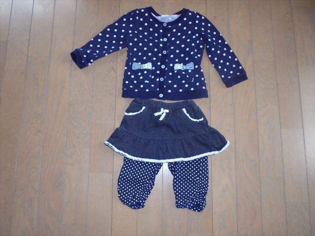 H&M、マザウェイズ★紺色水玉のカーディガンと、ズボンのセット★90