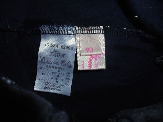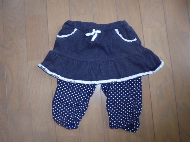 マザウェイズのスカッツ、スカートとスパッツが一体になっています。ウエスト総ゴムで履き易いです。スカート綿75、ポリエステル25%、レギンス綿95、ポリエステル5%。12~18ヵ月。着丈33、ウエスト19