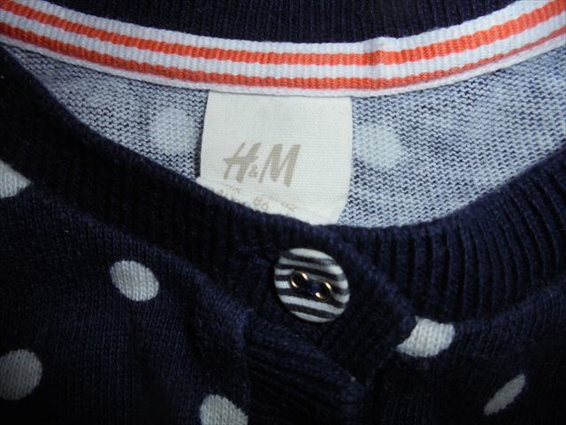 H&Mの水玉のカーディガン 綿100%、12~18ヵ月。着丈32、身幅28。ボタンが柄違いでかわいいです