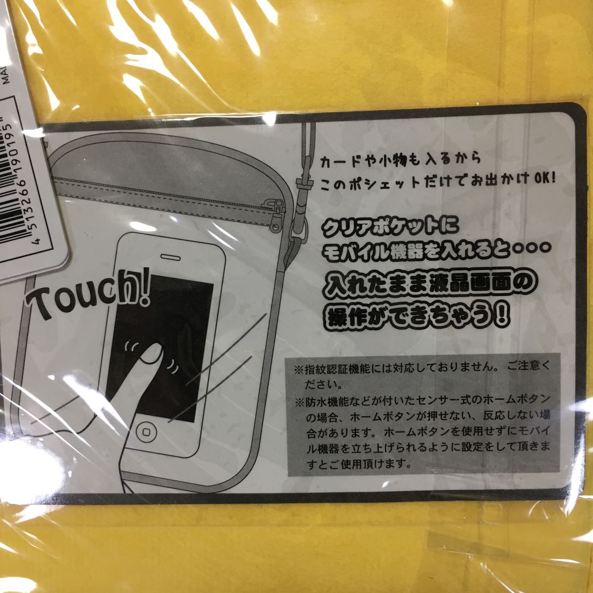 ・バッグの裏側がクリアタイプになっており、バッグに入れたままスマホのタッチ操作が可能です。