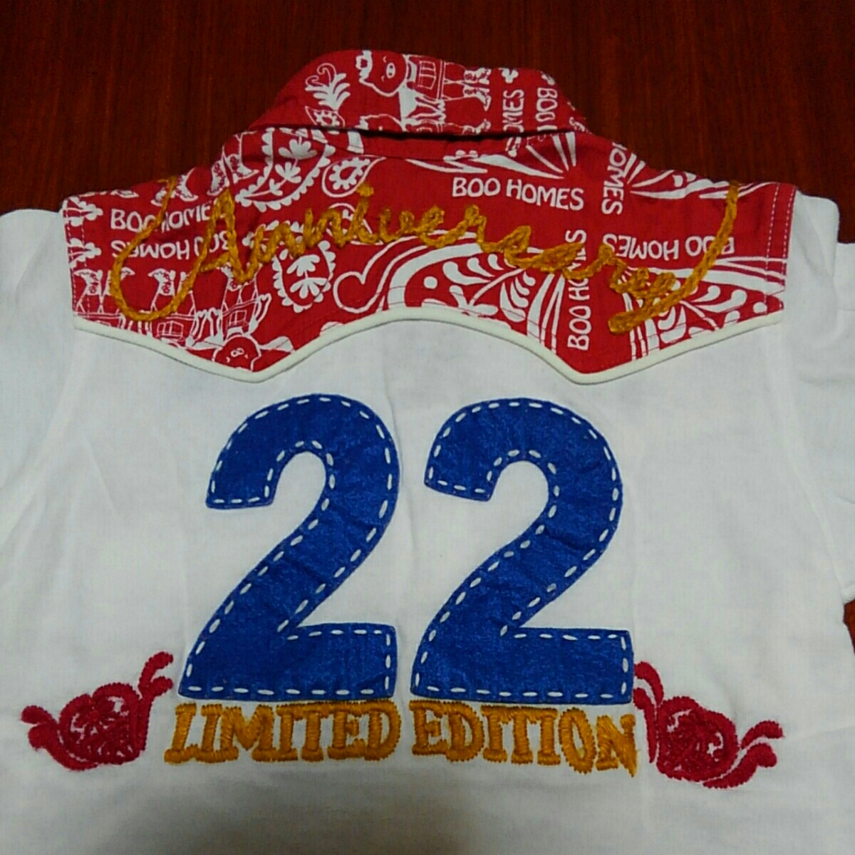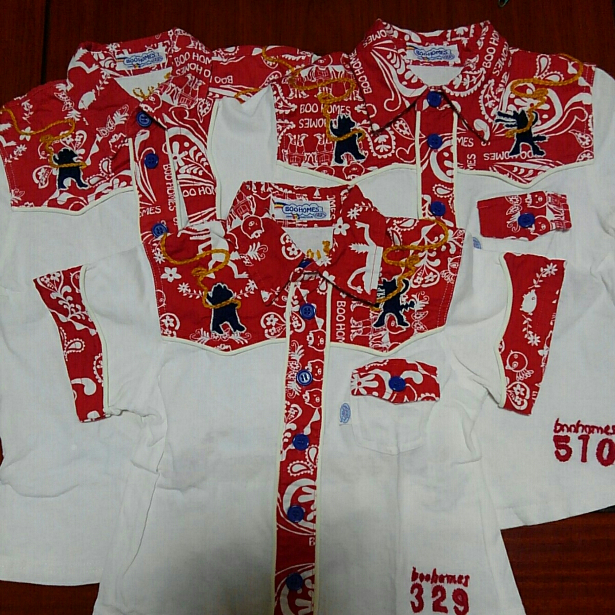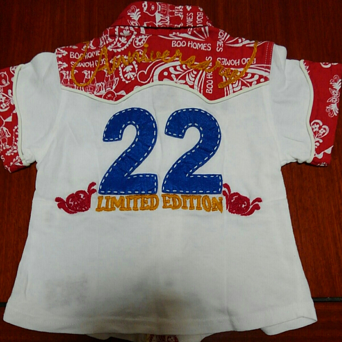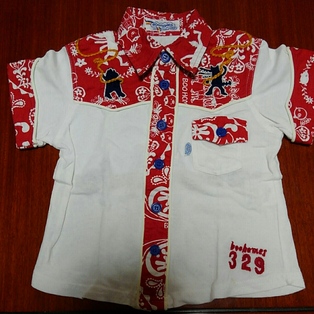 ブーフーウー ブーホームズ BOOHOMES 半袖シャツ 100㎝ 中古 白×赤 22アニバーサリー 限定モデル
