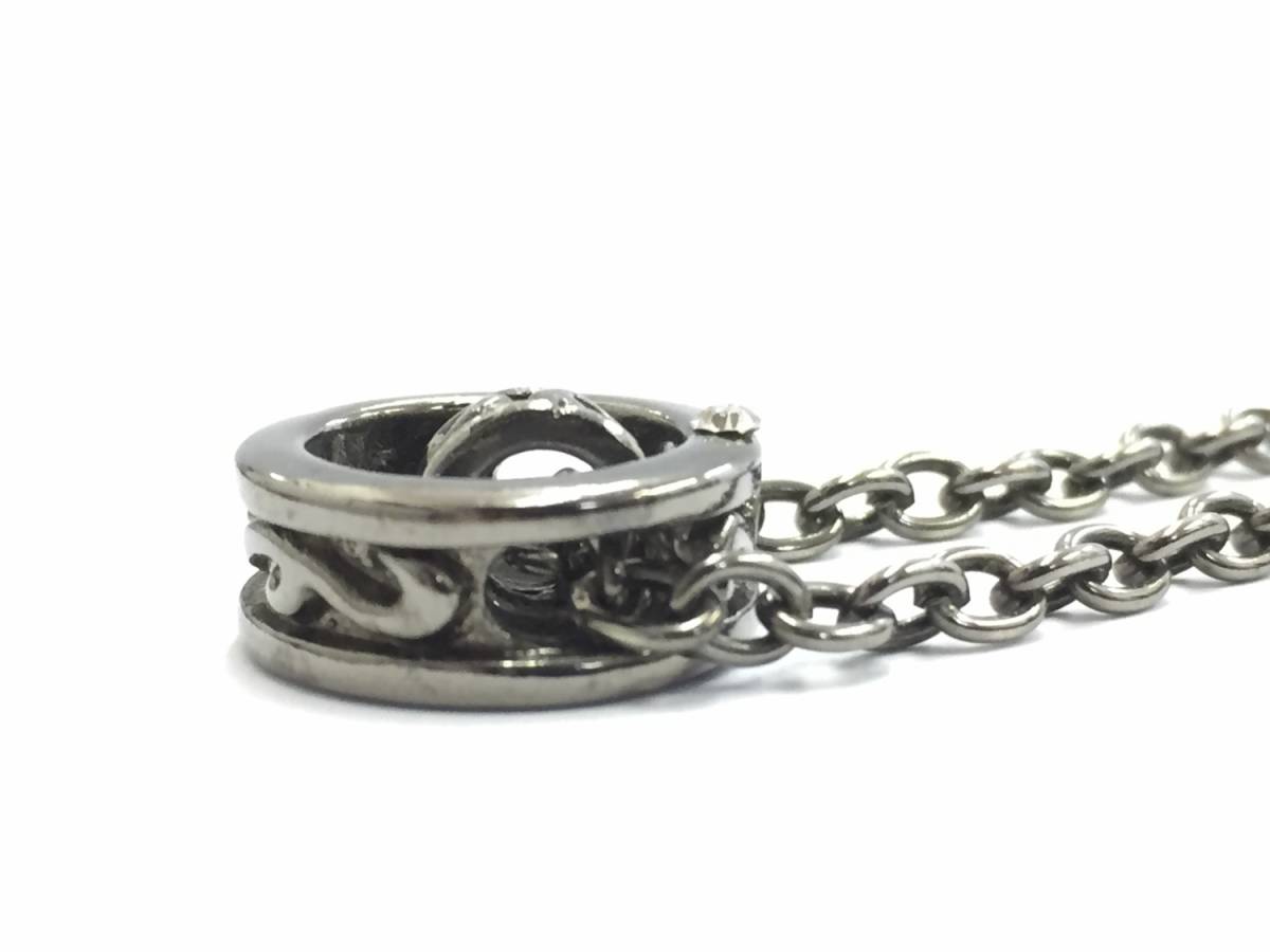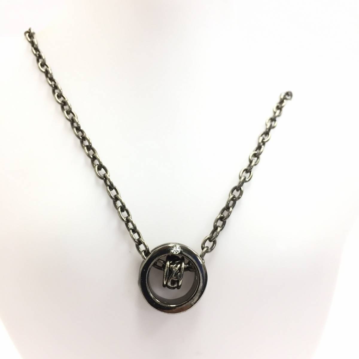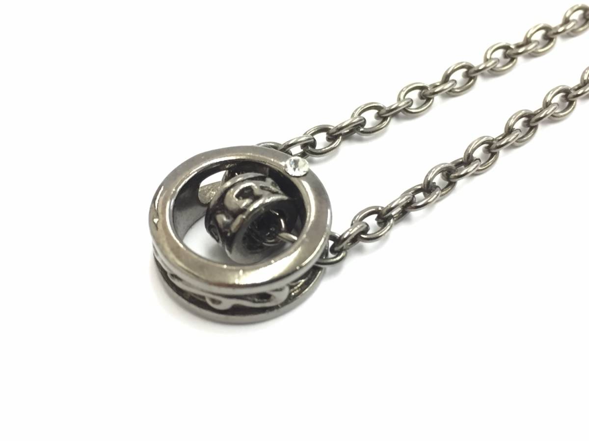 【ネックレス】約46cm いぶし銀色 メタリックグレー リング ペンダント 透かし クール 格好良い オシャレ